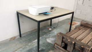 Bureau ou table de 120 x 80 x 68 cm Plateau en mélaminé gris très clair encadrement et pieds en métal