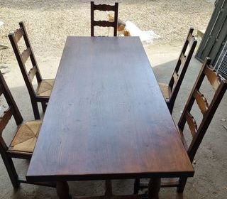 Table ronde en merisier, Jean Roche, 1,20m de diamètre, accepte des rallonges pouvant aller jusqu'à 1m, pied central pour les soutenir( vendue sans rallonges). Bon état À