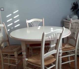table ronde avec une rallonge plus 4 chaises Blanche avec liseré rouge Bonne état A prendre sur place