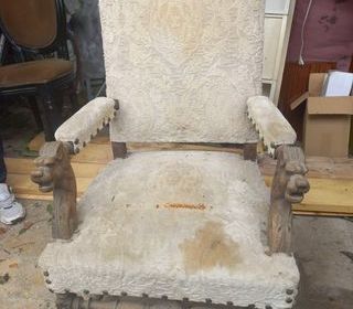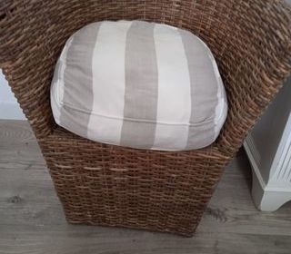 fauteuil osier pied plein avec coussin rayé beige très bon état