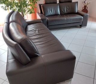 1 canapé 3 places cuir couleur marron 1 canapé cuir 2 places couleur marron encore en bon état pas de coupure , le cuir est pas râpé et la couleur est tré correct possibili
