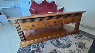 À saisir table de salon en bois massif avec finition miel. Avec ses lignes épurées et ses tiroirs pratiques, elle apportera chaleur et fonctionnalité à votre salon ! - Type de pro