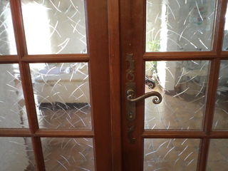 double porte-vitrée intérieure. En bois exotique, bon état. Dimensions d'une porte : Hauteur : 204 cm et Largeur : 84 cm. Poignée en métal.