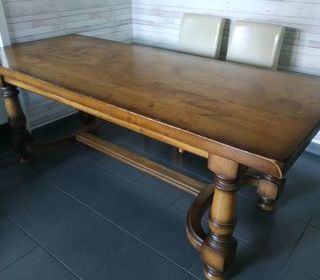 donne avec don participatif pour l'association humanitaire table en bois massif avec deux tiroirs a chaque bout 2m20 de long 85 de large