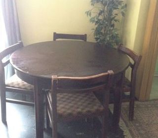 vend table ronde en chêne plus 5 chaises, en bonne état,négociable raisonnablement,
