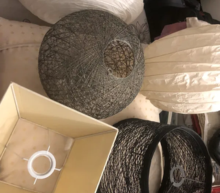 Bonjour, Vend 3 abats jour 2 noir et vert foncé, qui fait 27 cm diamètre et de 30 à 33 cm de hauteur, unité 10 euros, Le grand n'est plus disponible Blanc carré 29,50cm largeurs