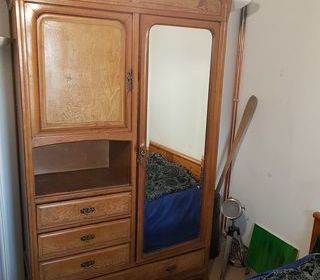 Armoire avec 3 petits tiroirs et un grand + miroir ..H 2m25 largeur 1m30.. profondeur 50 cm