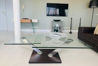 Vends table basse Roche Bobois collection TEA-TIME avec deux plateaux en verre coulissants : TBE : 700 €