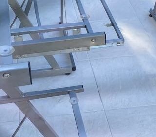 plateau bureau en verre noir sur 2 tréteaux noirs
