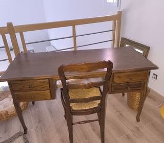 Vends bureau ministre Louis XV, 4 tiroirs avec sa chaise en chêne massif en excellent état. 1.40 de long 60 de large et 75 de hauteur A venir chercher sur place ainsi que le pa