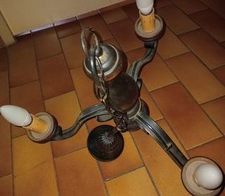 Lustre en bois et fer forgé. Trois branche