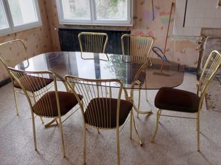 table+en+verre+fumée+style+vintage+plus+6+chaises très+bon+état+général