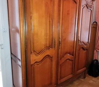 Armoire en bois massif en merisier h1.98 L1.80 l0.59 - façade chapeau de gendarme, Louis XV quatre niveaux de rangement è (pas de penderie) fabrication artisanale provençale - prop