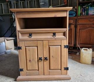 Vente meuble support de micro-ondes Avec 2 portes , 1 tiroir , tablette Dessus faïence blanche 50 € CTC :