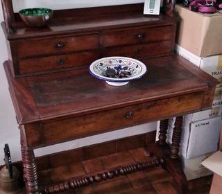 Bureau Secrétaire bois massif avec tiroirs et étagères. - Type de produit : Secrétaire - Matériau : Bois massif - Fonctionnalités visibles : Tiroirs, étagères - Style : Tradit