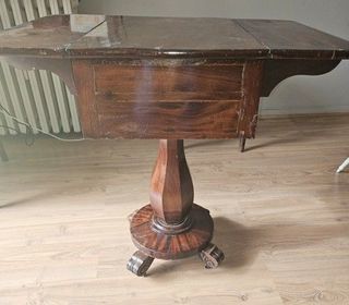 Petite table 19° siècle avec 2 rallonges rabattables et 2 tiroirs