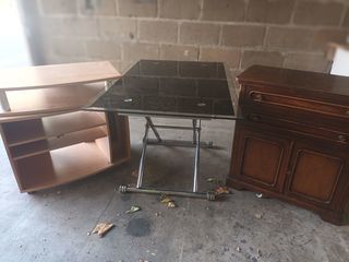 Vends Table TV vintage. 3 tables de différentes tailles et formes, coloris écru ou façon bois. Rénovation à prévoir. A prendre sur place