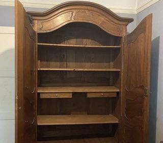 Vente vaisselier en pin massif. Hauteur : 200 cm Largeur : 145 cm Profondeur : 48 cm Meuble en 2 parties dissociables (vitrine et buffet). Bon état général