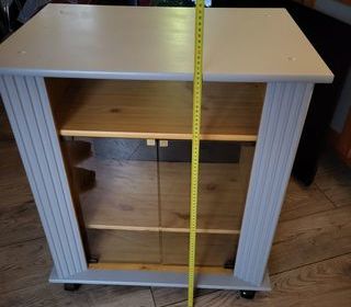 Meuble tv en pin sur roulettes 2 portes vitrées