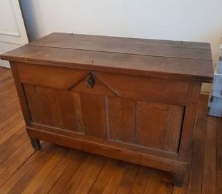 COFFRE BOIS ANCIEN AVEC COUVERCLE INTEGRALE LE TOUT D ORIGINE POUR DÉCO OU RANGEMENT