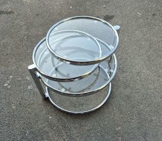 A vendre : Table basse chromée avec plateaux en verre . Très pratique, prend peu de place et peut se déployer. Toujours protégée donc état neuf