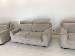 Ensemble de canapé poltronne et sofa dans un très bon état une très bonne qualité le nettoyage et facile d'entretien il y a juste un canapé de deux places oui il y a une déchirure