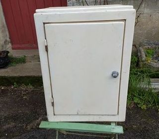 Petite Armoire Murale Vintage Style Mado. Hauteur 50cm, largeur 36,5cm, profondeur 25cm. Très bon état, à nettoyer.