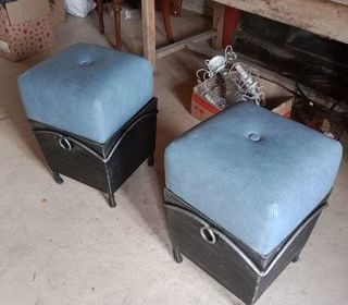 2 poufs style industriel, structure en métal noir et assise en cuir gris bleuté. Très solide ( fer forgé) , bon état. A prendre sur place, soit à Legé 44 ou Coëx 85. Prix 25 €/pièc