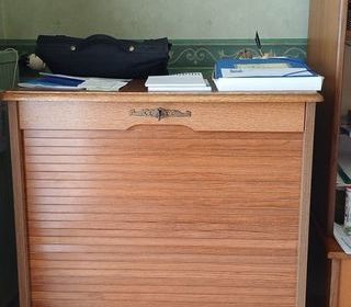 Je vends ce meuble à dossiers en bois massif. - Type de produit : Meuble à dossiers - Matériau : Bois massif - Fonctionnalités visibles : Rangement pour dossiers, étagères - Co