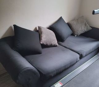 Vends canapé , et fauteuil en cuir bleu . Canapé , profondeur : 60 cm Longueur : 184 cm Fauteuil , profondeur : 55 cm Longueur : 85 cm 4