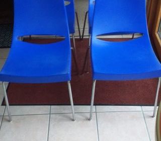 Vends 4 chaises de cuisine PVC bleu empilables pieds chromés bon état