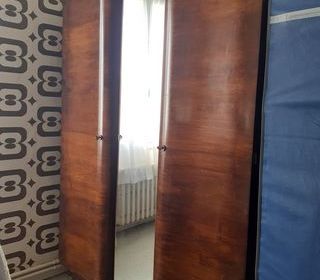 Jolie armoire, style art déco, année 50, en bois fabrication artisanale, 2 portes + 1 miroir central avec étagères et tiroir intérieur, en très bon état. Dimensions L. 1.34 m x