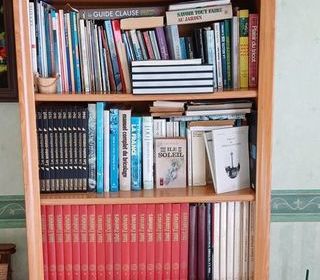 Je vends cette bibliothèque avec de nombreux compartiments de rangement. - Type de produit : Bibliothèque - Matériau : Bois mélaminé - Nombre de compartiments : Nombreux - Fo