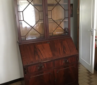 Secrétaire/bibliothèque en bois massif, couleur acajou, en bon état. 300 euros à débattre. A venir chercher dans les environs de Vallet.