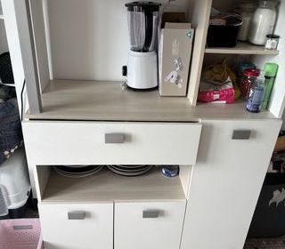 Je cède un vaisselier en bois massif en parfait état, comme neuf. Il est en 2 parties. Les 2 portes coulissantes ont un beau vitrage de style aux bords biseautés. Ses dimensions