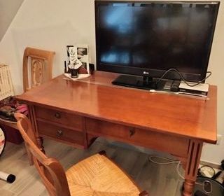 Bureau en 125 x 75 , 3 tiroirs , chaise paille Mobilier en parfait état Facile à transporter pieds dévissables A retirer sur place