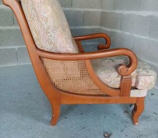 Fauteuil de salon en bois . Tissu à refaire . Possibilité d'en avoir un deuxième .