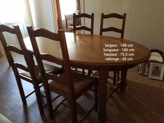 Vends table de salle à manger chêne clair, bois massif, état neuf. 4 chaises assorties. Acheté chez Meubles Jean Gorin - Redon Fabrication française. Haut de gamme.