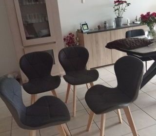 Vends 4 chaises bon état moins de un an Achetées 200 euros vendues 60 euros Quelques ecratugnures