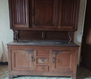 Vends buffet chêne datant de 1850 environ,la partie basse est une vieille maie ancienne et le haut sert de rangement cuisine