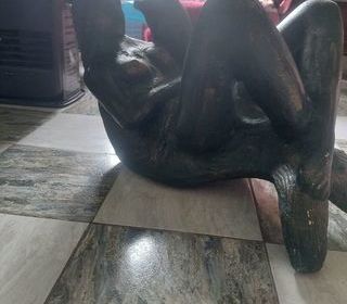 Vends table couleur marron et ses 6 chaînes. Plaquage un pied gauche dégradé. A venir chercher sur place. Paiement lors du retrait