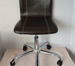 Chaise réglable en hauteur et pivotant Cuir Piétement chrome poli Hauteur ajustable Pivote à 360° Dimensions Profondeur assise 42 cm Largeur assise 39 cm Hauteur dossier 40