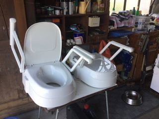 Rehausseur pour toilette pour faciliter l'accès au WC des personnes âgées qui ont du mal à se relever des WC. Vendu 25 Euros pièce;