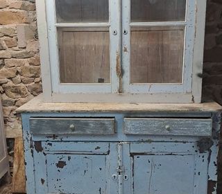 Garde-manger vintage shabby chic 260 € État: État satisfaisant Type: Buffet Matière: Bois Couleur: Bleu pastel Pièce: Cuisine & salle à manger Description J