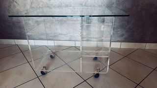 Vends table à roulettes en verre et plexiglass épaisseur 1 cm en très bon état. Dimensions : Longeur : 90 cm Largeur : 45 cm Hauteur : 62 cm (y compris roulettes) PAS DE LIVRA