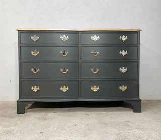 DIMENSIONS : Largeur : 118,5 cm Hauteur : 82 cm Profondeur : 47,5 cm DESCRIPTION : 8 tiroirs RÉNOVATIONS RÉALISÉES : Décirage Ponçage Peinture Décapage des poignées e