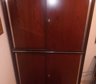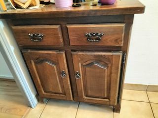Je vends cette armoire en bois massif avec 2 portes et 2 tiroirs. - Type de produit : Armoire - Matériau : Bois massif - Nombre de portes : 2 - Nombre de tiroirs : 2 - Style : Trad