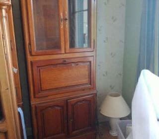 vends 2 bibliotheques 1 vitrée 1m80 de haut avrec etageres et 1 en 2 parties 2m10m de haut 170 de long et 38 de large elle ne sedémonte pas attention 7 étages a pied po