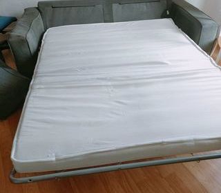 Grand canapé usagé convertible a lattes, 200 cm longueur, 90 cm profondeur, 57 cm haut.1 trace brûlure cigarette sur Assise A débarrasser, 3 étage sans ascenseur.Parking facile