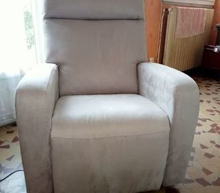 Vends fauteuil relax électrique avec releveur Poltronesofà Gacciola. État neuf. Garantie 2 ans. Revêtement microfibre. Coussin assise double densité. Couleur gris soie. Pr